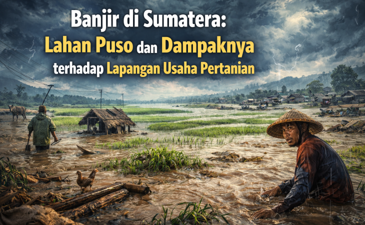 Pulau Sumatera merupakan salah satu lumbung pangan nasional, khususnya untuk komoditas padi. Namun, dalam beberapa tahun terakhir, Sumatera dihadapkan pada tantangan alam. Intensitas bencana hidrometeorologi, terutama banjir dan longsor meningkat signifikan, yang berdampak signifikan pada sektor pertanian. Bencana terakhir pada akhir 2025 memicu gagal panen (puso) di ribuan hektar lahan pertanian. Hal ini tidak hanya menekan produksi pangan, tetapi juga mengganggu keberlanjutan lapangan usaha pertanian di wilayah perdesaan. Ketiga provinsi yang paling terdampak adalah Aceh, Sumatera Utara, dan Sumatera Barat.